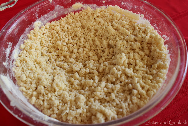 Your dough will resemble fine crumbs if you use a mixer to combine.  You will need to get your hands dirty here to press the dough together.