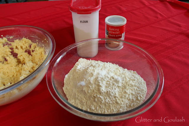 4. Stir together flour and baking powder and gradually add to creamed mixture